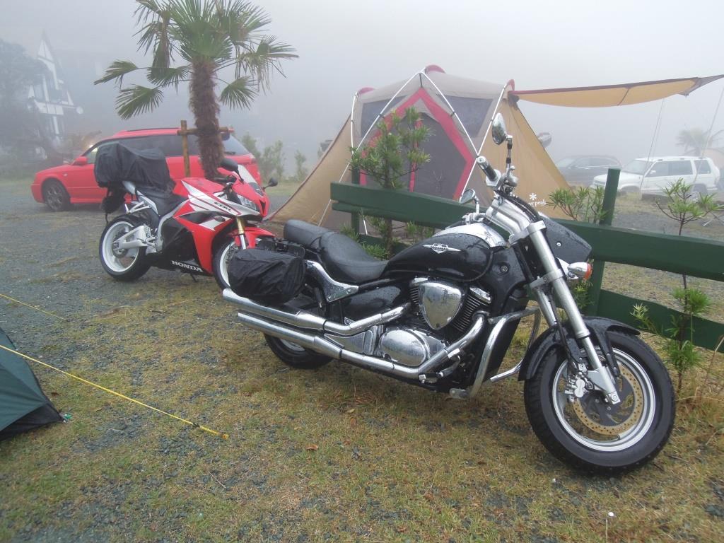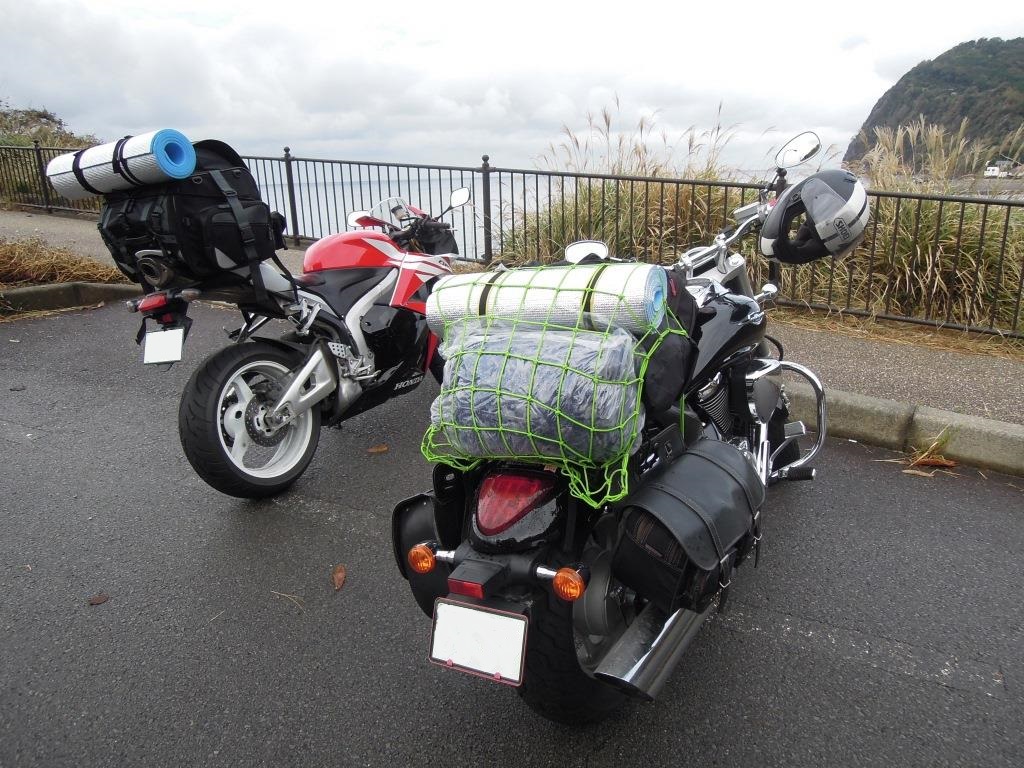 とはいえ、今はもう秋の中間。段々と気温も下がり始めてバイクには厳しい季節になってきます。 なので比較的暖かい伊豆のほうにツーリングに行ってきました。 今回はキャンプを挟めた一泊二日の予定。CBR600RRに乗るS氏と走ります。 荷物はテント一式とシュラフ、マットなど。 今まで使っていたツーリングバッグでは収まりきらず積載が大変でした。 このバッグは最大容量が27ℓですがシュラフひとつにスペースをほとんど奪われてしまいました。 出発は東京から。 連休の合間だったので、渋滞を避けるため早朝5時に家を出ます。 今更ながら蛍光グリーンのネットがよく目立つ。 色合いは悪くない…かな? 黒にしておけば良かったかなと思うことがしばしば。 S氏のCBR600RR。 シートのバッグは最大容量がなんと59ℓ。僕のバッグの2倍を上回ります。 キャンプに行くならこれぐらいの大きさが必要でしょうか。 家を出発して環状八号線から用賀inへ。そこから東名高速に乗ります。 海老名で休憩。真っ暗です。 でも出る頃には日が昇りはじめていました。 東名を走っていたのは朝の5時半頃でしたが車の数はとても多かったです。渋滞が嫌でかなり早起きしてきたのですが、みんな考えることは同じということですかね。 厚木inで東名を降り、129号から134号、そして1号線へ。 129号は車が多く、信号で何回もストップしました。46号で迂回したほうが楽かもしれませんね。 このあとは芦ノ湖を目指します。 西湘バイパスを使って山崎inで降り、そこからまっすぐ芦ノ湖へ。 ここは732号線。 途中には甘酒茶屋や箱根神社などがあり、趣のある道です。 芦ノ湖南東のセブン前にて。 このとき軽乗用車が右折中の乗用車に突っ込む事故がリアルタイムで発生しました。 怪我人はいなかったようですが、出掛けに事故を目の当たりにするとは…。先が不安になります。 道の駅箱根峠に到着。 目立った施設はありませんが、休憩するだけならちょうどいい場所です。 富士山が見えました。 この日は曇っていましたが、晴れた日にはよりはっきりと富士山が見えるのでしょう。 さて、伊豆に来たのならば伊豆スカイラインを走らねば。 始まりの熱海ICから終わりの天城高原ICまで行きますよ。 伊豆スカイラインの入り口。 バイクは料金所ではなく、手前の係員さんに料金を支払います。 バイクは細かいお金の支払いに手間取ること、バイク利用者が多いことが理由でしょうね。 急なカーブは少なく、走りやすい道です。 ですが、道はあまり広くないので対向車には注意したいですね。 あと後ろから飛ばしてくるバイクやスポーツカーにも…。 一休み。 伊豆スカイラインの前半は眺めが良く、素晴らしい風景です。 後半は森の中。紅葉を楽しむのに最適です。 伊豆スカイラインを越えたらそのまま海岸線の135号へ。 混雑してるだろうなぁと覚悟していきましたが、車の流れはそれなりにスムーズでした。 逆に流れの早い車の列が延々と続いているので合流の機会を探すのに苦労しますね。 伊東市のKenny's House Cafeというお店でソフトクリームを。 店までの道が複雑でかなり苦労しました。 でも味は最高。ビーフシチューもおいしいみたいですよ。 朝5時出発は少し早すぎたのか時刻はまだ11時。 ひとまずゆっくりしようということで温泉を探します。 MAPPLEで探してみると磯の湯というお店を発見。 値段も一人500円と安かったのでそこへ行くことに。 ここが入口。 トンネルの中をまっすぐ進むと温泉があります。 海の音を聞きながらの露天風呂。 開店直後で貸し切り状態。思い切りゆっくりしました。 解放感は抜群ですが、この位置の釣り人からはこちらも丸見えです。 磯の湯を後にして、次は道の駅開国下田みなとへ。 名前から分かるように下田はペリー来航によって日本が開港した2つの港の内のひとつです。 外観も含めてきれいな施設です。 海産物などの土産も充実しています。 なんと黒船に乗ることも出来ます。 気分は外洋人? ここからずっと南下して石廊(いろう)崎へ。 石廊崎の駐車場。 ここからは徒歩で15分ほどかかります。 画像右の坂道を登っていくわけですが、これがかなり辛い…。 海上保安庁のヘリが大接近。 石廊崎灯台では海保の人が観光案内をしていました。 神社はかなり切り立った場所にあります。 伊豆の海岸線にはこのような険しい海岸がよく見られます。 もともと住むには厳しい場所だったのでしょう。 画像の人物はS氏。 海保の制服を借用して記念写真。 こんなサービスもやってるんですね。 このあとは136号を北上。 今回利用させていただく夕日ヶ丘キャンプ場に16時頃到着しました。 入口は角度のある急な坂になっていて注意です。 このキャンプ場は管理人さんも親切ですし、海を見渡すこともできるのでおすすめですね。 料金はひとり2000円。3人以上で行くとひとり1500円になります。 ちょっとお高いですが、伊豆のキャンプ場はどこも料金が高めです。メインの観光施設ですから仕方ない