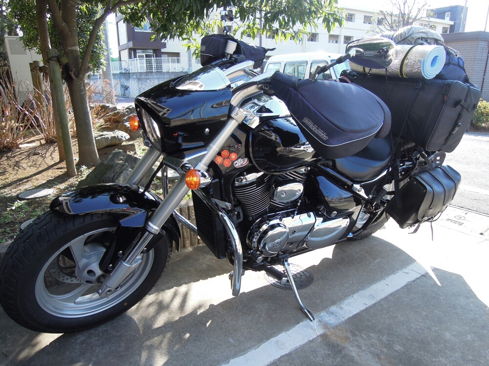 午前中にマンションの引き払いを終えて、それからのスタート。 荷物は最低限にしたつもりだが、それでもかなりの量と、そして重さがある。 2つのシートバッグをネットとワイヤーで固定 準備はまあ、大丈夫。万端ではないかな。 いざ、出発!! まずは20号(甲州街道)を西へ。 調布、八王子を越えて高尾、そして相模原に。 よく通った道だが、もうしばらくは来ないのだろう。 相模湖へ寄って少し休憩。 そのあとは道志道へ。 今日は、この道の途中にある新戸キャンプ場で一泊する。 518号の途中にあるよな・・・と日が沈む中迷う。 数分迷って到着。 道が砂利で走りにくいところがありますが、とても広いキャンプ場です。 管理人の老夫婦の方も大変親切に説明してくださいました。 ですが・・・とても暗い。 また、他の利用者がいない(一人いるようなんだよなぁ)ため、とても静かで、川の流れる音が近くで聞こえるだけです。 夏に来ると最適なんでしょうね。 テントの設置も終了。 近くのセブンで食料を買って今日の日程は終了です。 カップヌードル。まあ、いいよね。 明日は、箱根かな。 本日の移動距離:77km(総距離77km) PR ● コメントフォーム |