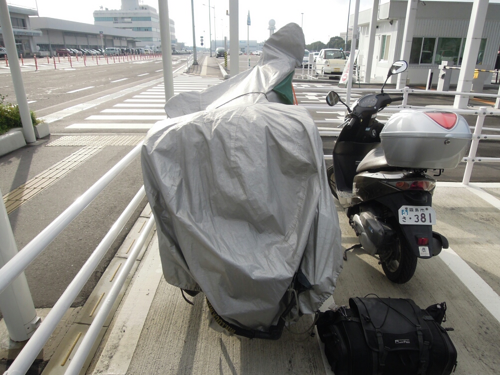 答えはこちら。 鹿児島空港でございます。 何故こんなところにいるのかというと、大学の卒業論文に関する口述試問が12日にあり、それに参加するため東京に戻らねばならないからです。 飛行機は生まれて初めて。 きちんと手続きできるといいのですが。 空港内のバイク駐車場。 1時間60円という安さ。これはありがたい。 置いていくのは忍びないですが、無事にいてくれよ。 手続きを終えて出発。 地から足が離れることがものすごく不安。 上空からの景色は本当にきれい。 桜島が煙を吐いているのがよく見えました。 鹿児島から東京までは約2時間。 僕は2週間掛かってきたのだと考えるとちょっと複雑。 うとうとしている間に羽田に到着。 この日はNAPSでレインカバーなどを購入。 翌日、卒業論文の口述試問を終えて、友人の家で一泊。 ゼミのみなさん、教授、本当にお世話になりました。 そして、またすぐに鹿児島へ戻ります。 眼下は白い雲で覆われている。 すごく嫌だなあ。 雨が降ってる。 うん、分かってました。 今日は鹿児島市で一泊。 明日は沖縄だ。 移動距離:65.1km(総距離:2904.3km) そろそろオイル交換をしないとなぁ。 PR