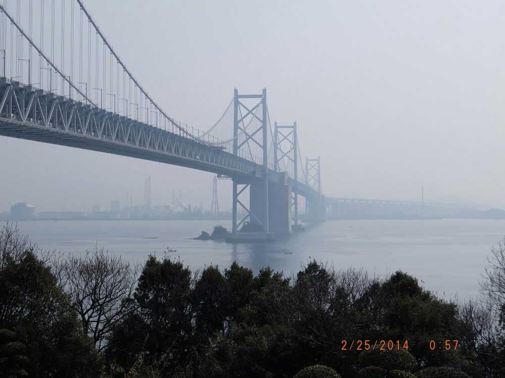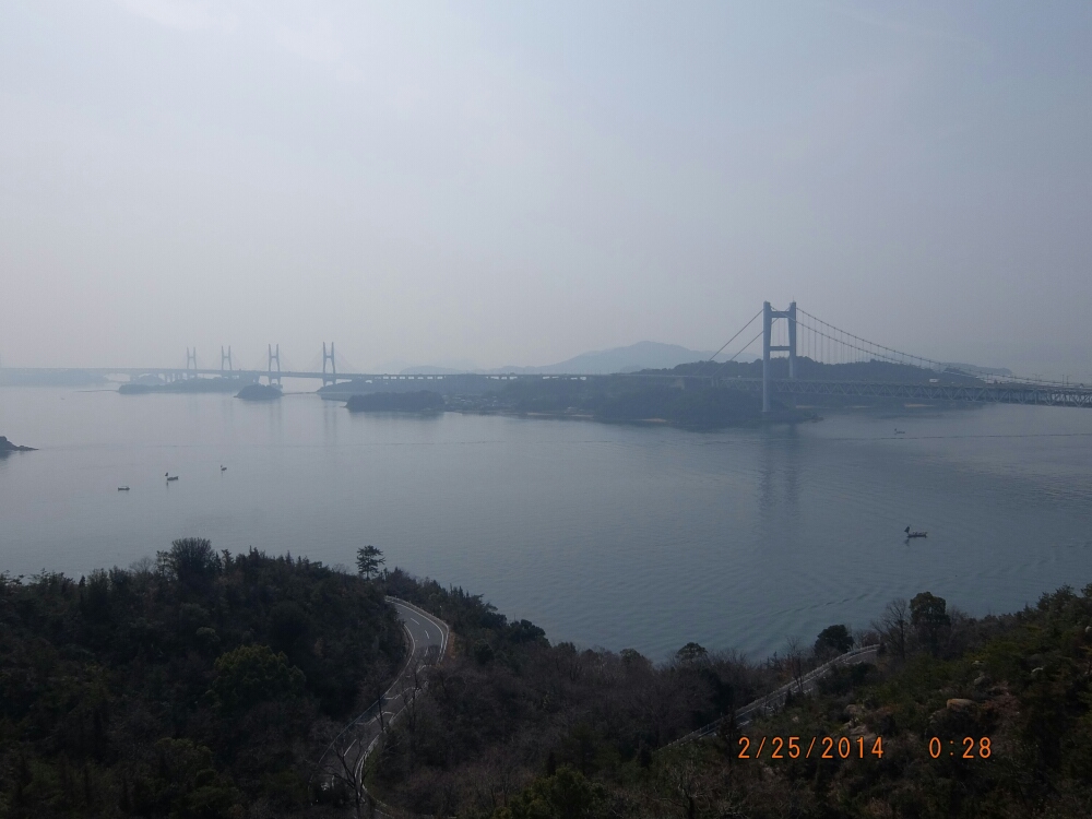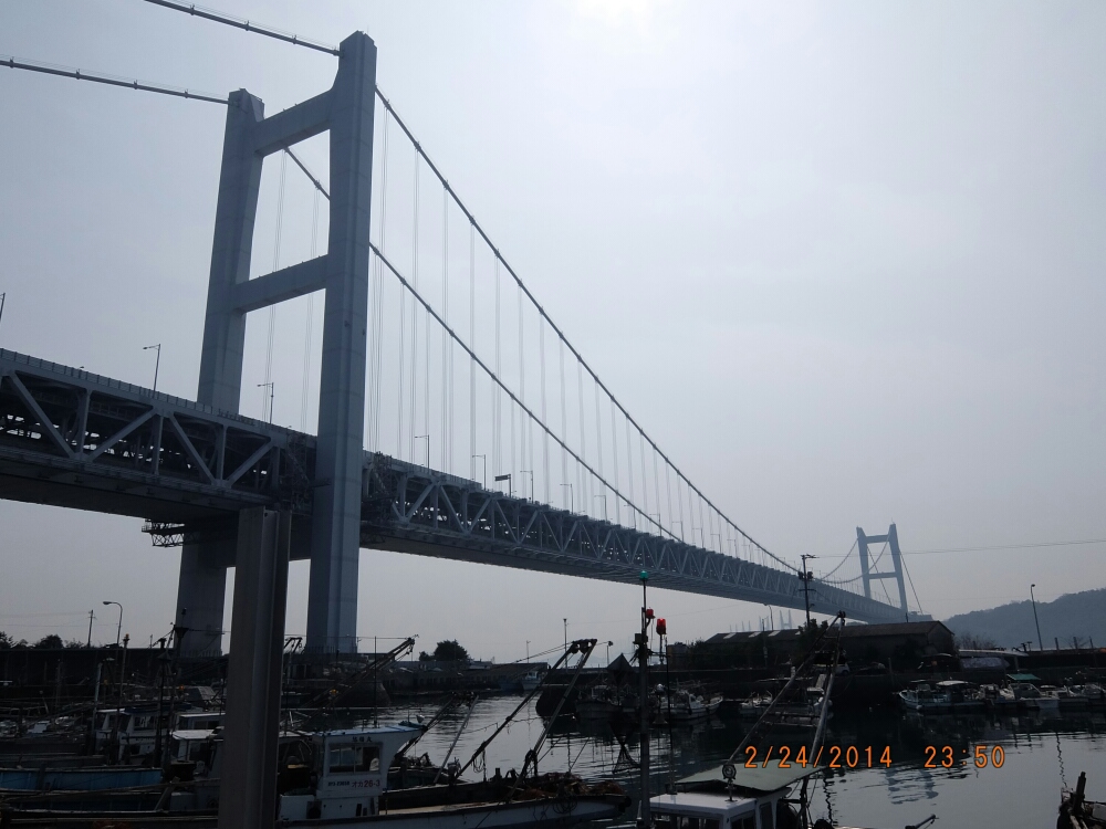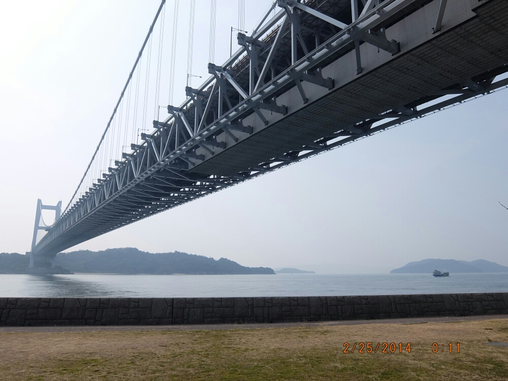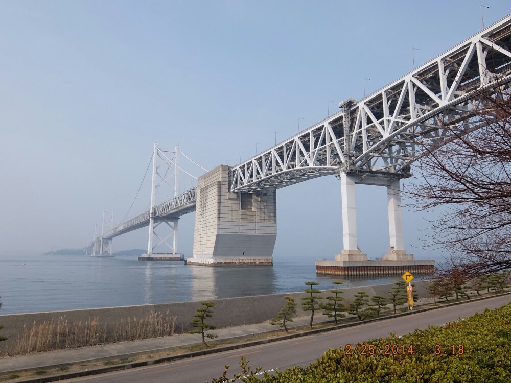 高速を乗り継いで瀬戸大橋へ。 せっかくなので手前の下津井で橋を見てみる。 これは下津井瀬戸大橋。 下津井港と鷲羽山から撮りました。 鷲羽山は四国まで見渡せることができる大きな展望台があり、瀬戸大橋の長大さがよく分かります。 それでは、いざ瀬戸大橋へ。 広い。 長い。 橋を支えるワイヤーの太さや、橋そのもののデザインの美しさなど目を引くポイントがたくさんあります。 橋の途中にある与島からの眺めも。 瀬戸大橋はこれで終了。 晴れた日に走れて良かった。 高速道路なのでゆっくりは走れないが、景色だけではなく橋の構造などを観察するのも面白いですよ。 坂出北で降ります。 すぐにうどん屋を発見。これは食べねば。 瀬戸大橋記念公園で橋の構造、歴史を学ぶ。 瀬戸大橋は高度な技術の集合体なんですね。 あれだけ大きな橋を作るのに、数cmの誤差や地球の球形に気をつけているそうです。 揺れる海上で建設するのはさぞ難航したのでしょうね。 今日はこのまま坂出で一泊。 何だろう、すごく落ち着かない。 明日は愛媛へ。 PR