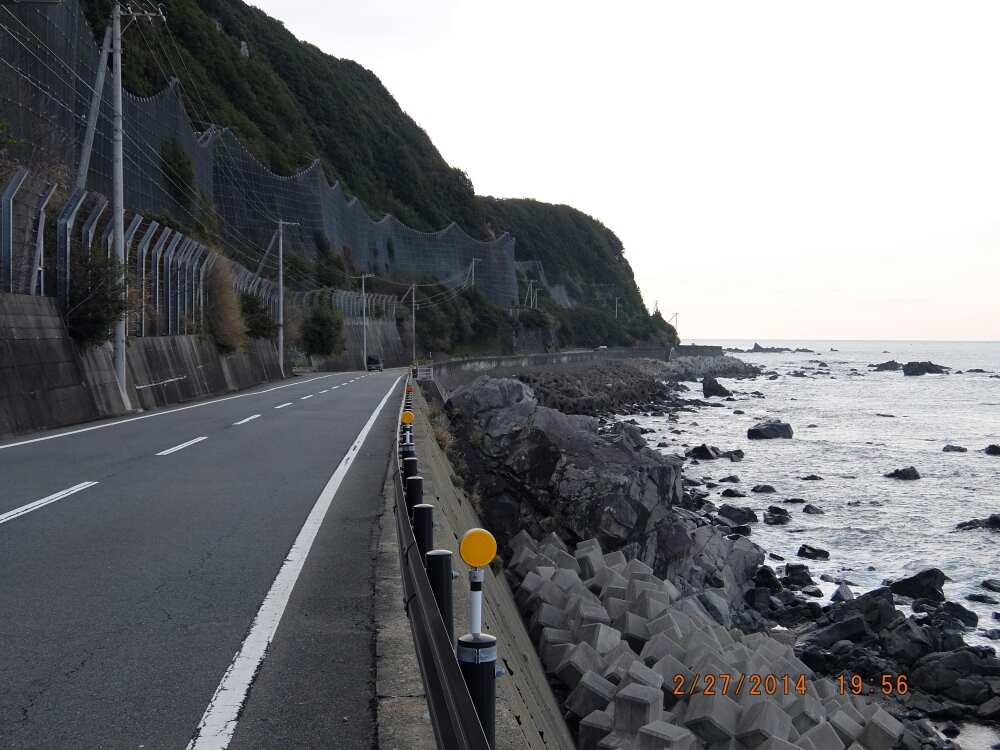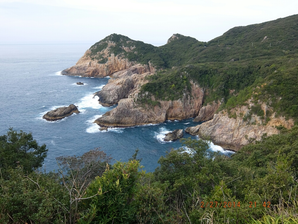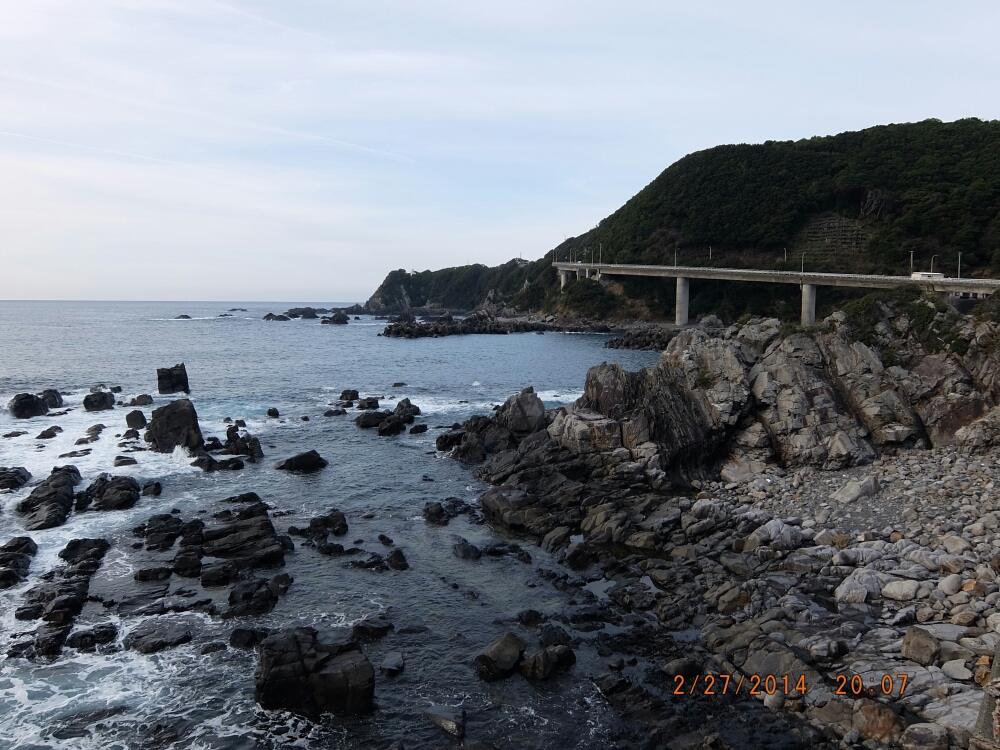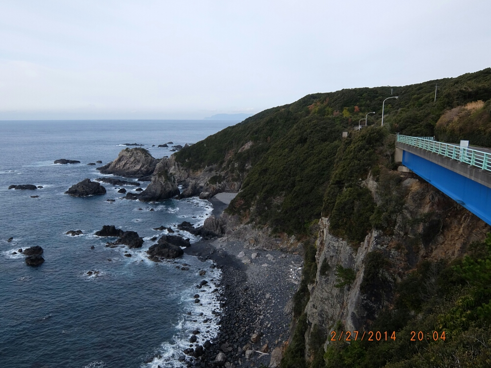 足摺岬を目指します。 別名サニーロード。 見応えのある海岸線が続きます。 叶崎でパシャリ。 道の駅土佐清水めじかの里で休憩。 足摺岬へは海岸を通る27号と、中央の山頂を越えていく348号があります。 27号は展望がグッドですが、道が所々極端に狭くなるので注意が必要です。 348号は峠道ならではのカーブが連続しますが、狭い道もなく、走りやすいです。 僕はまず348号で足摺岬へ向かい、帰りに27号を使いました。 さあさあ、足摺岬に到着しました。 四国最南端はどんな場所なのでしょう。 岬でした、以上(え 樹木が南国の雰囲気ですね。 近くには四国八十八箇所の38番寺、金剛頂寺があります。 そこで売店にてこれを買ってみた。 おお、目立つ目立つ。 遍路では無いので若干気恥ずかしい。 でも旅してるって感じでいいですよね!? 足摺岬の後は、高知市へ向けて走ります。 27号からの眺め。 カーブがきつい。 時間はまだ十分。 四国カルストに行くため、439号を進む。 四万十川。色がエメラルドです。 部落が点在している。 439号を走り終えて。 すっごく怖いです。もう走りたくない。 あまりにも幅がない極狭の道。 先が見えない急カーブの連続。 道の中央に溜まる砂利、苔。そして落石。 そんな道なのにガードレールが無いんですよ。 途中に部落があるから、対向車もちらほら現れるし…。 気が全く抜けない驚きの道です。 まあ、でも自然の中を走るといる感覚は抜群に味わえます。 寿命が縮む思いで440を上る。 四国カルストは見えるか。 うえ、通行止め。 雪と凍結が原因ですね。 仕方がないのでカルストの反対側へ回ってみる。 眼下に山々が広がります。 もうちょっと上まで行きたかったのですが、道が凍結してたので断念しました。 あと、画像は無いですがキジ(鳥)がいました。 普通に道の真ん中を横断していました。野生は初めて見た。 道の駅布施ヶ坂で食事。 親子丼を注文。 今日は高知ビジネスホテル別館で一泊。 素泊まり3000円。安っ! この日は438に振り回されました。 高知恐るべし。 明日は徳島へ。 PR ● コメントフォーム |
