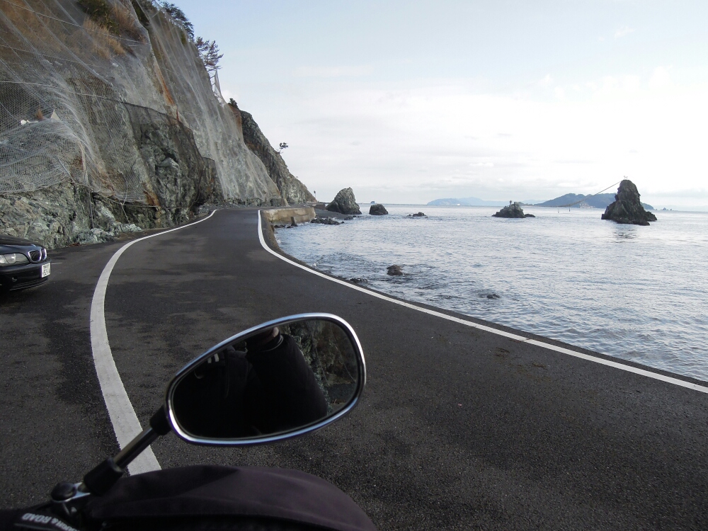 個人的な都合で11日には鹿児島にいなくてはならないので、高速も使って距離を稼いでいきます。 日曜割引を目一杯使っていきましょう。 キャンプ場を出て、速見ICから早速高速道路へ。 大分自動車道に乗ります。 別府湾SAは眺めがいいですね。朝日がよく見えました。 別府といえば温泉ですが、時間がないのでまたいつか。 大分で降りて、197号に乗り関崎に行きます。 道が険しい。 狭い道なのにガードレールは無し。落ちたらドボンです。 でも走ってて楽しいですね。 関崎灯台。 歩いていかなくてはならないのですが、遠かったので見るだけ。 酷路への入り口。 この635号は対向車が来たらバイクでもアウトなほどの狭さ、そして急カーブが続きます。 スポーツバイクなんかは多分腰を痛めそうです。 しかし、眺めは抜群。 来てみる甲斐はありますよ。 このあとは東九州自動車道で佐伯まで行き、388号を南下します。 九州の自動車道は基本片側一車線なんですね。 一応途中ににポツポツと追い越し車線が用意されています。 あまり需要はないんでしょうかね。 今は高速道路が北と南でいくつかに分断されていますが、現在整備中で将来的には一本に繋がるかも。 しばらく走って道の駅かまえに。 ここでカメラが無いことに気づきました。 いつも首から下げていたのですが、留め具が外れてどこかで落下したようです。 ・・・え。 来た道を引き返してカメラを探す。 7、8km探し回ってようやく発見。 海に落としていなくてよかった。 トンネル入り口の歩道の上に転がっていました。 バラバラに壊れていたので、とりあえず全部持ち帰る。 宮崎市内に。 南国の雰囲気がすごい。遠くにシーガイアも見えます。 宮崎シティホテルで一泊。 カメラは・・・ 部品を組み合わせてテーピングでぐるぐる巻きに。 メモリーチップとバッテリーを差し込んだら問題なく動きました。 すごくほっとした。 明日は鹿児島です。 移動距離:420.8km(総距離:2533.9km) |