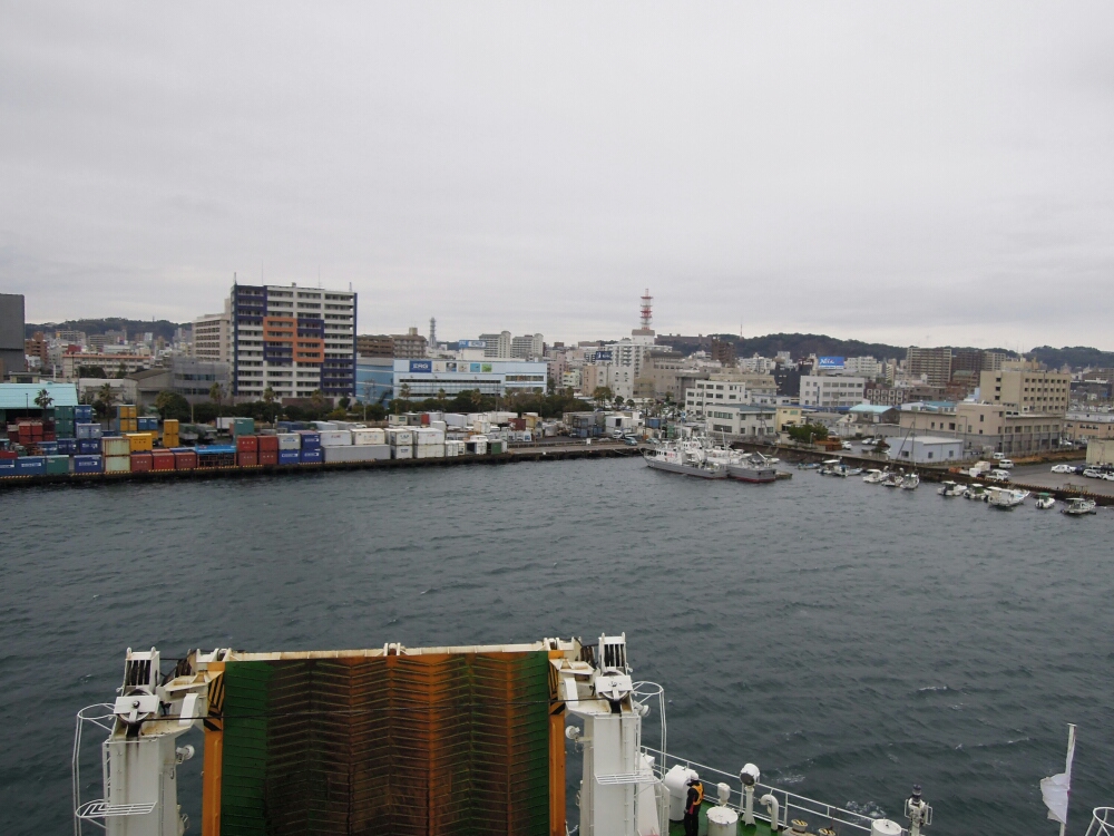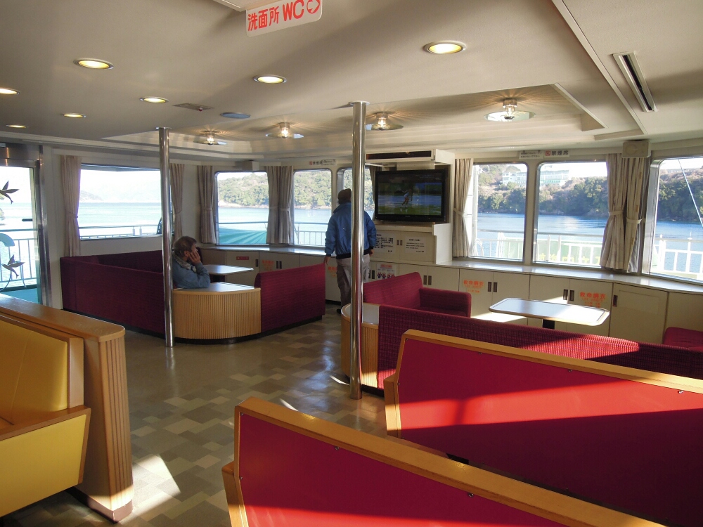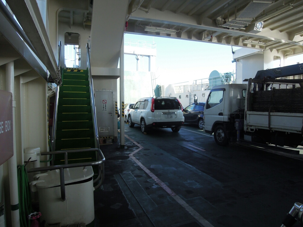 フェリーのアナウンスで、今日はシケが強く、到着が2時間ほど遅れると言っていた。