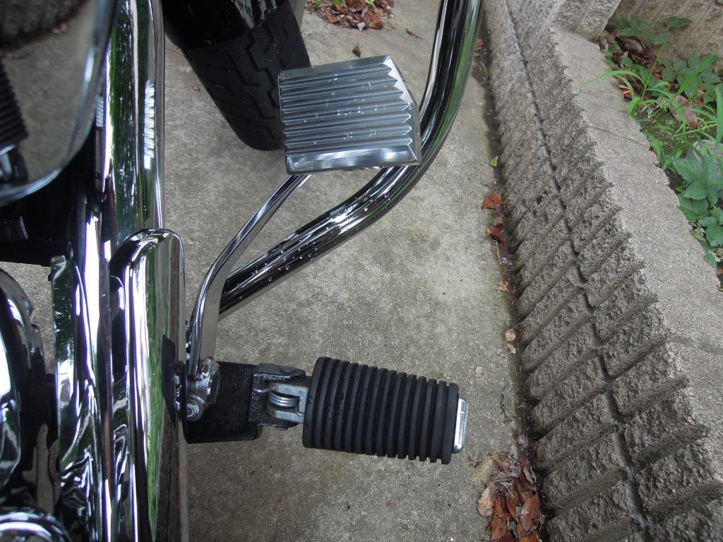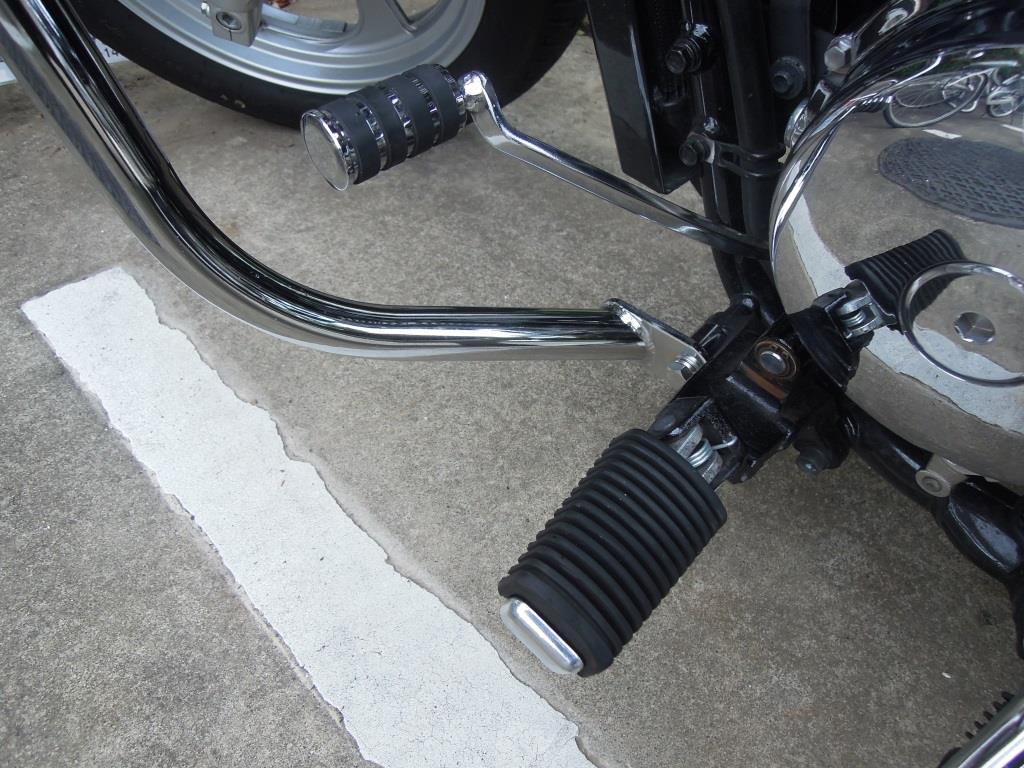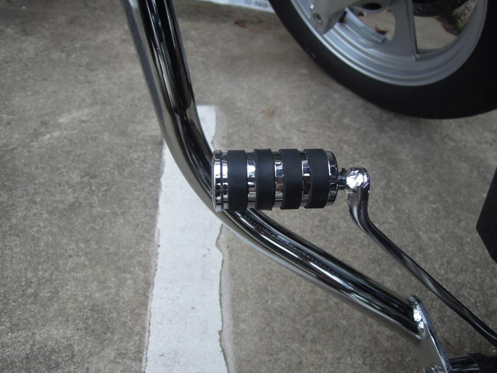 まずは、ハリケーンから販売されているシフトペグ。お値段は3,000円ほど。 カッコよさを優先した結果です。使う分にはさほど違いはありません。 でも、ネジ締めが甘かったり、ゴムが完全に擦り減ってしまうと、メッキ部分がツルツルしてとても使いにくくなると思います。 あと、元からついているゴム部分を外すのにすごく苦労しました。 見ると分かりますが、長さが足りていないのか端が少し余ってしまいました。仕様なんでしょうか。 気にする人は嫌がりそうですね。 2つ目は同じくハリケーンから販売されているブレーキペダルカバー。お値段は5000円ほど。 ブルバードのリアブレーキペダルって小さくて踏みにくいんですよね。 まっすぐ踏めないというか、足を内側に捻りこんでペダルを踏まないと届かないんですよ)僕だけでしょうか… なので、踏む面積を拡げることでそれを解消しようというわけです。 取り付けは簡単。 ペダルカバーをそのまま差し込んで、裏からネジ締めするだけ。 これだけなのに5,000円は高くないだろうか…うう。 でも、以前よりとても踏みやすくなりました。 違和感もないですし、足裏の全体を使って踏み込めるので無理に力を入れることもありません。 これはおすすめですね。 一応ブルバード用と書いてはありますが、他にもドラッグスターやバルカンなど国産のアメリカンにも対応しています。 気になる方はメーカーさんのHPをチェックです → http://www.hurricane-web.jp/ |